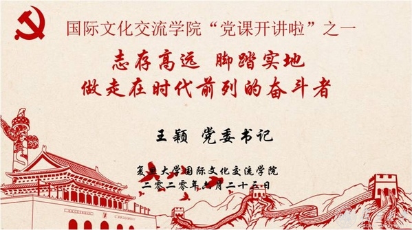 国际文化交流学院党委通过系列党课宣讲,推动广大师生党员加强政治理论学习,提高党性修养和工作站位,强化使命担当,胸怀天下,脚踏实地,在汉语国际教育领域发挥先锋模范作用,做走在时代前列的奋斗者、开拓者、奉献者。