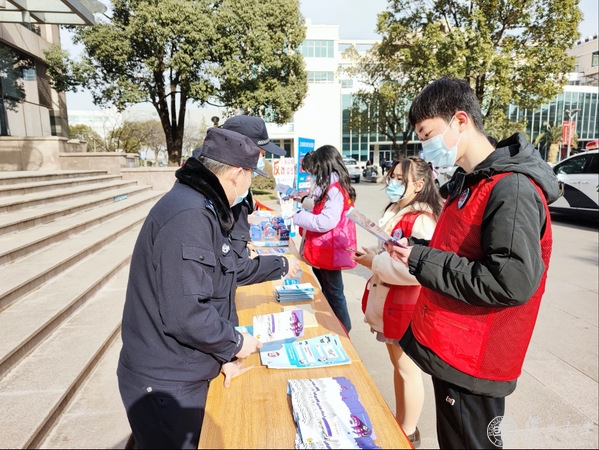 为进一步加强校园防诈骗工作,提高广大师生员工的安全防范意识和能力,复旦大学平安志愿者和警察们在光华楼东辅楼前开展了现场反诈骗宣讲活动,向参与活动的师生发放反诈骗宣传手册,宣讲人身安全及财产安全方面的知识,强调“万骗不离转账”的反诈宗旨,明确“不听不信不转账”的反诈策略。