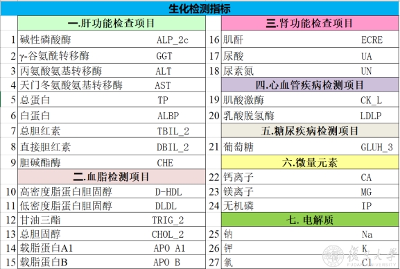 目前,全自动生化分析仪开通了27个检测项目,不仅包括肝功能、血脂、肾功能、心血管疾病、糖尿病、微量元素等检测模块,还包括其他检测单位不常开放的电解质模块——可以检测钾、钠、氯3个指标。理论上,这套设备可以检测上百种指标。如果课题组有特殊需要,可以加开项目,即进行个性化定制。