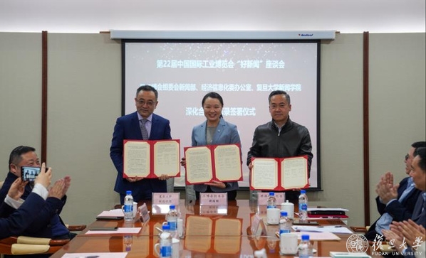 为进一步发挥复旦大学新闻学院的学科和人才优势,支持工博会新闻工作,服务上海与全国新闻宣传事业,推动产学研融合创新,复旦大学新闻学院、中国国际工博会新闻部、市经济信息化委办公室签署了三方深化合作备忘录,将在工博会新闻宣传、产经科技新闻报道、新闻业务培训以及新闻人才培养等方面深化合作。具体包括加强实务协作,推进产经科技新闻的策划、实施与评估;进行课题合作,开展产经科技新闻报道案例研究;推进产经科技新闻、融媒报道、对外传播方面的业务培训;共建学生实习实践基地等。会上,戎之勤代表工博会组委会办公室向复旦大学新闻学院赠送第22届中国国际工博会媒体新闻报道合集。