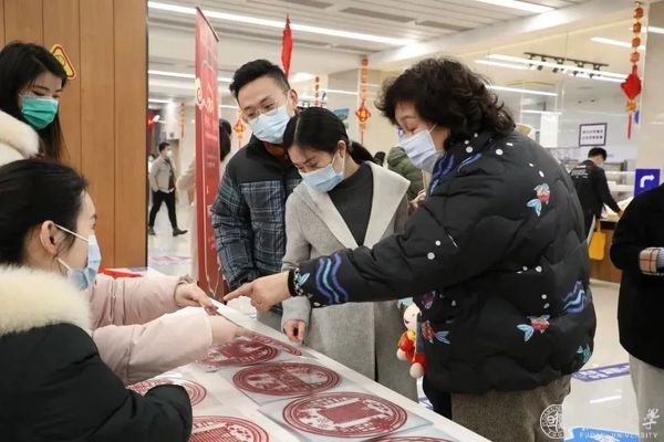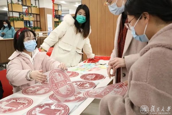 此外,活动现场还准备了由复旦医学生自行设计的5款复旦上医专属窗花,到场的同学纷纷领取。火红的春联搭配上精致的窗花,年味满满。