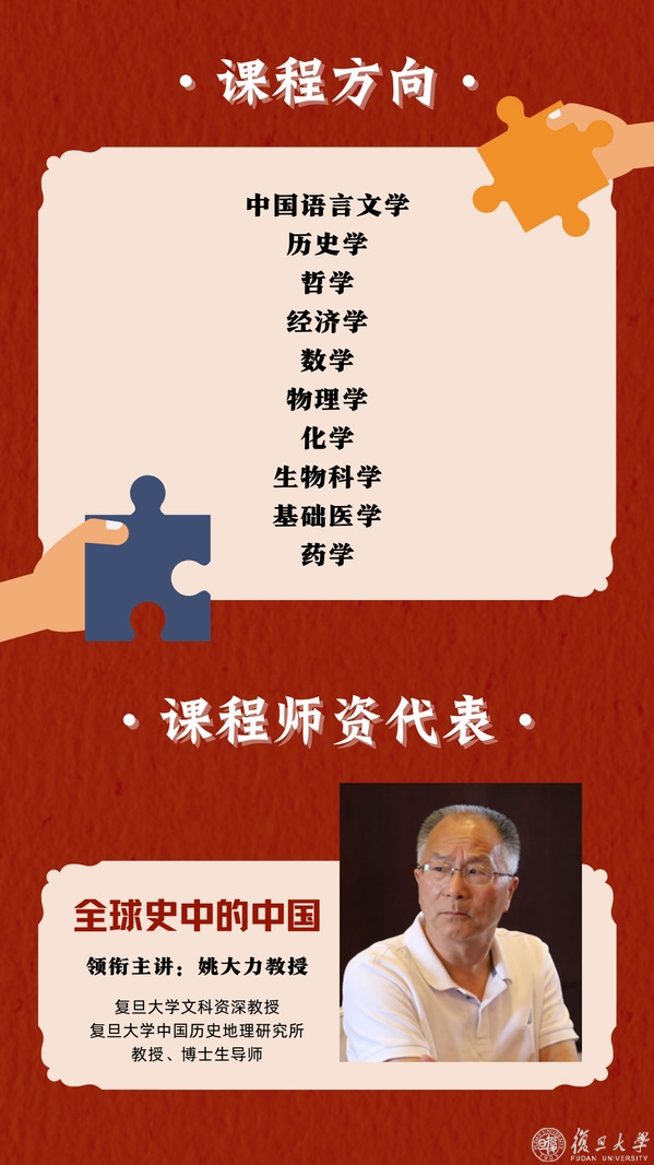 想走进复旦大学校园,与教授们面对面学习交流,体验大学教育氛围吗?想提前感受复旦中国语言文学、历史学、哲学、经济学、数学、物理学、化学、生物科学、基础医学、药学等十大学科所开设课程吗?这个创新有趣、开阔眼界的周末学堂适合你!