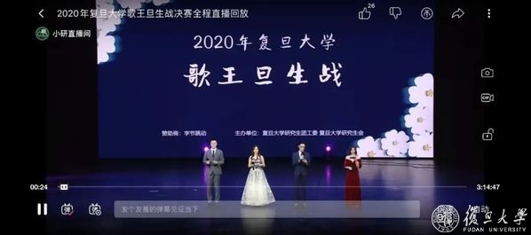 “唱响2021——复旦线上卡拉OK大赛”系列活动让复旦师生一起欢唱迎牛年!本次系列活动共进行了四场线上直播,通过两轮线上演唱 + 大众评审打分的形式展开比赛,最终决出了本次卡拉OK大赛的歌王。据统计,四次直播时长共计8.0小时,最高人气值共达8879,互动弹幕共计586条,推送统计量共5192次。合家线上欢乐唱直播活动中,多组特别的嘉宾走进直播间,与直播间观众们分享自己的歌声。他们之中有回到家乡的母女对唱,有云室友合唱,亦有来自校友、教工、师生的个人独唱。多样的演唱形式和演唱中的丰富情感让直播间中洋溢着欢快的气氛。