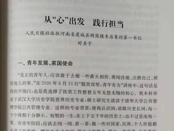 时圣宇是人民日报派驻河南省虞城县利民镇西关村的驻村第一书记,他以“从‘心’出发,践行担当”为题讲述了西关村的扶贫故事,也非常欣慰地向同学们展示了贫困村的今昔变化,并鼓励青年学子学好专业知识,投身强国伟业。