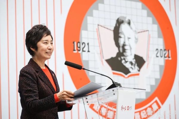 “尤为值得一提的是,1999年9月,也就是谢先生逝世前不到半年,她还为解放日报“我和祖国”征文活动专门寄来文章《五星红旗唤我回国》,字字句句发自肺腑、感人至深。在文章的最后,谢先生这样写道——‘中国知识分子是有爱国的好传统的,他们在中国共产党的领导下,必将在建设新中国的征途中,取得辉煌的业绩。’再过几个月,中国共产党的百年华诞就要到了,具有爱国传统的中国知识分子,也正在民族复兴的道路上继续创造着辉煌业绩。谢希德先生忠于党、热爱国家的精神也一定会一代一代传承下去。这,也正是我们举办这个展览的初心。”