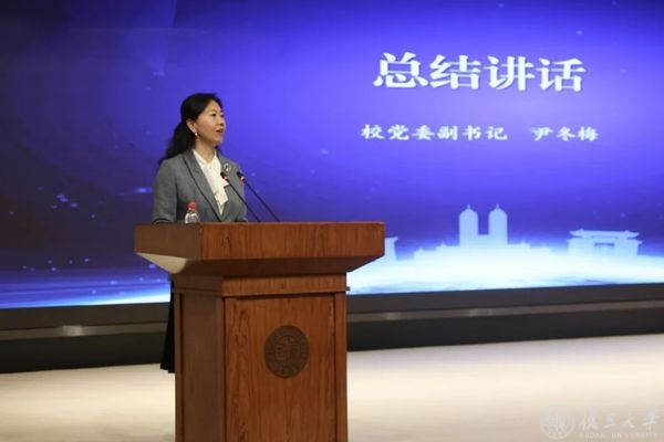 尹冬梅在总结讲话中谈到,要进一步准确把握网络育人工作新形势,根据科学技术的发展变革、外部挑战和学生特点等内外部环境变化,做到因事而化、因时而进、因势而新。通过启动“望道新传媒奖”评选和成立“复旦大学网络育人联盟”,推动形成“全校师生共同参与、培养环节全方位融入、育人要素全面升级”的网络育人新格局;构建“各类育人队伍协同发力、多元平台有机联动、丰富精品生动呈现、创新评选引领风尚、全校师生共建共治”的网络育人新体系,最大程度画好网络育人同心圆。尹冬梅就进一步加强和改进网络育人工作提出三点希望:一是要转思路,进一步树立互联网思维。要能够运用大数据、人工智能以及不断涌现的新技术;二是要提能力,进一步有效提升开展网络思政工作的新本领;三是要聚合力,增强利用网络环境协同育人的工作能力。尹冬梅强调,今天的网络育人联盟启动仪式是一个新的启航,希望在座所有老师、各联盟成员能够切实把“网络最大变量转化为育人最大增量”,共同开创具有复旦特色的网络思政工作新局面。
