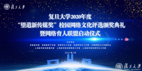 本次颁奖典礼及启动仪式由党委宣传部、党委教师工作部、党委学生工作部、党委研究生工作部、共青团复旦大学委员会、上海医学院党委宣传部、上海医学院党委教师工作部、上海医学院党委学生工作部主办,活动由党委学生工作部部长徐阳主持。各单位宣传委员、各单位新媒体运营负责人,各院系学工首要负责人、分管网络思政专职辅导员、网络育人联盟成员单位负责人、获奖作品作者等共200余人参加了活动。