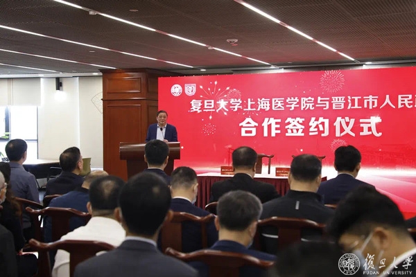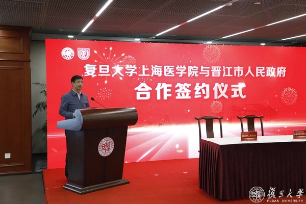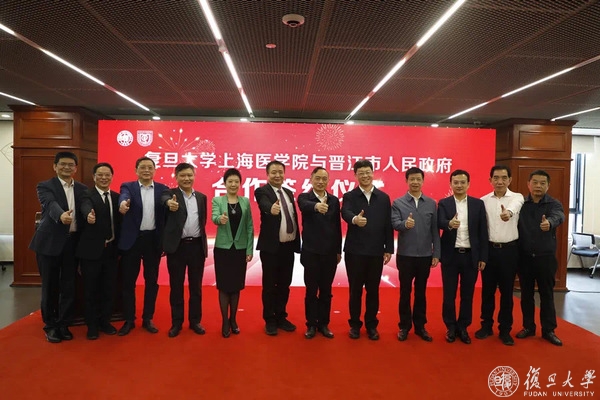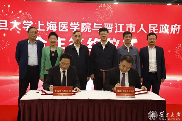 4月20日,晋江市人民政府与复旦大学上海医学院合作签约仪式在复旦大学图书馆医科馆举行。泉州市委书记康涛,泉州市委常委、晋江市委书记刘文儒,晋江市委常委、市政府副市长李自力,晋江市政府副市长黄少伟;复旦大学党委副书记、上海医学院党委书记袁正宏,复旦大学常务副校长、上海医学院党委副书记、院长金力,上海医学院副院长吴凡、汪志明等出席活动。金力与黄少伟代表双方签约。签约仪式由汪志明主持。