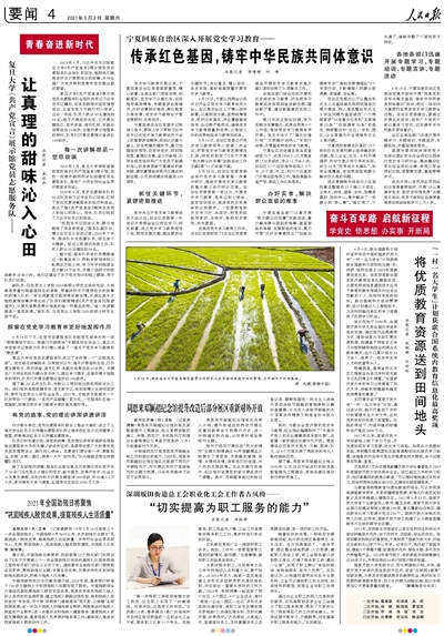 据了解,56名学生队员,半数以上同时担任院校两级学生工作。他们有的是班级辅导员、党支部书记;有的是博士生讲师团讲师、青年马克思主义研究会会员。2021年,功能党支部要求一个队员带动一个群体,一系列产品碰撞一团火花,一支服务队扛起一面旗帜,探索在党史学习教育中更好地发挥作用。