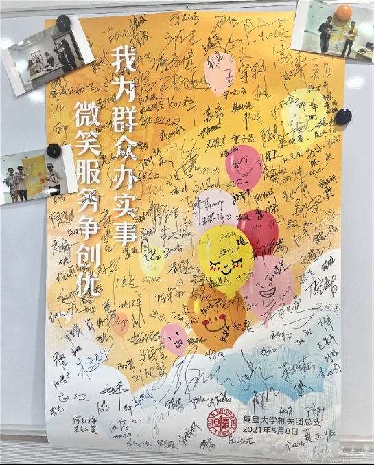 5月8日为“世界微笑日”,为提升机关工作温度,展现新时代共产党员与共青团员良好风貌,切实开展“我为群众办实事”实践活动,在机关党委指导下,机关团总支以“我为群众办实事,微笑服务争创优”为主题,组织开展活动,传递微笑,分享愉悦,打造“服务师生有微笑,世界一流有你我”的和谐校园。