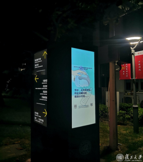 在本次宣传周期间,总务处还充分利用校园电子路牌、教学楼和食堂电子屏等滚动播放节水宣传海报和视频,为校园节水营造浓厚氛围。