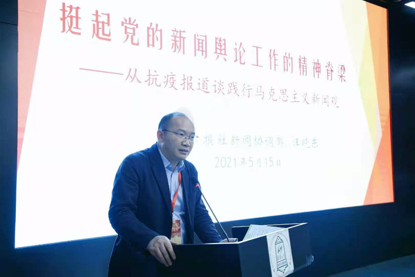 清华大学新闻与传播学院院长、马克思主义新闻学与新闻教育改革中心主任柳斌杰作了题为《中国共产党百年新闻实践的鲜明特色》的特别报告。他说,中国共产党一直高度重视新闻舆论工作,在百年的新闻舆论工作历程中形成了特色鲜明新闻制度、新闻理论和新闻实践,并从鲜明的指导思想、鲜明的舆论导向、鲜明的人民立场、鲜明的战斗风格、鲜明的全球意识、鲜明的职业责任、鲜明的纪律规范、鲜明的党性原则等8个方面对实践特色进行了系统、全面分析。