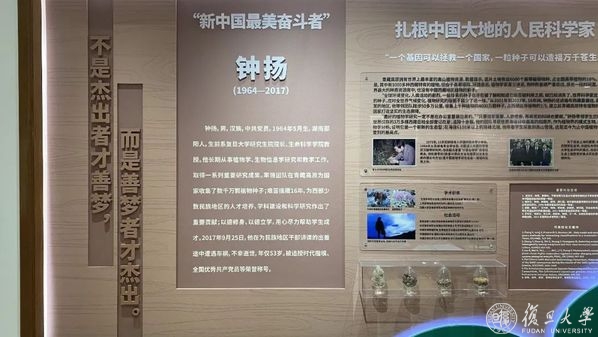 据悉,为了宣传钟扬先进事迹,激励更多复旦师生做忠诚于党和人民的新时代奋斗者,学校在江湾校区生命科学学院大楼内设立了钟扬纪念室,通过文字和大量珍贵的照片、实物等立体展现了钟扬为教育与科研事业勇于献身的光辉一生。