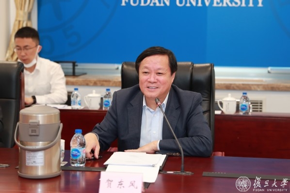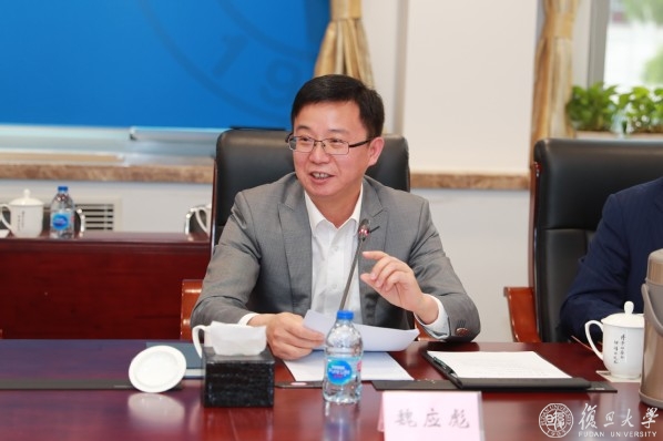 5月18日,中国商飞公司党委书记、董事长贺东风一行到复旦大学考察调研,与校领导和相关部门机构、院系负责人和专家交流座谈。校党委书记焦扬出席座谈会并讲话。