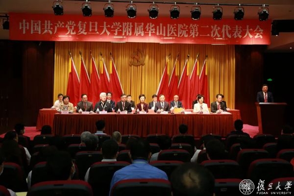 复旦大学党委书记焦扬,复旦大学党委副书记、复旦大学上海医学院党委书记袁正宏出席大会,在主席台上就坐的还有大会主席团成员。从全院2009名党员中选举产生的203名正式代表出席大会,华山医院老院长陈星荣、张元芳等20位代表列席大会,华山医院党委副书记、院长毛颖主持大会。