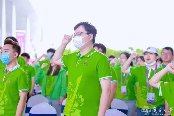 5月19日,复旦大学的“小白鹭”代表们参加了花博会志愿者上岗宣誓暨党团组织成立仪式。仪式上,复旦大学社会发展与公共政策学院2019级研究生陈瑜作为党员代表发言。