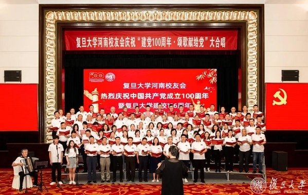 在“颂歌献给党,校友大合唱”环节,近百位河南校友们共同唱响《唱支山歌给党听》《我爱你中国》《没有共产党就没有新中国》等三首经典歌曲。饱满的热情、嘹亮的歌声,将现场气氛推向高潮,振奋人心。把颂歌献给党,河南复旦校友共同庆祝中国共产党成立100周年。