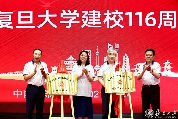 许征、张一华、徐明稚、谭瑞清共同为复旦大学河南校友会企业家校友会、黄河之友志愿者揭牌。