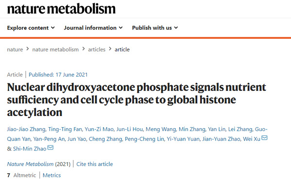 赵世民团队/徐薇团队长期从事蛋白质乙酰化研究,原创发现了蛋白质乙酰化是代谢调控新机制(Science 2010a, Science 2010b),蛋白质乙酰化调控葡萄糖平衡(Molecular Cell 2011, Cell Metabolism 2012)以及蛋白质乙酰化调控肿瘤发生(Nature Communications 2017)等。代谢物和细胞周期信号对组蛋白乙酰化的调控加深了对乙酰化生理病理重要性的认识。