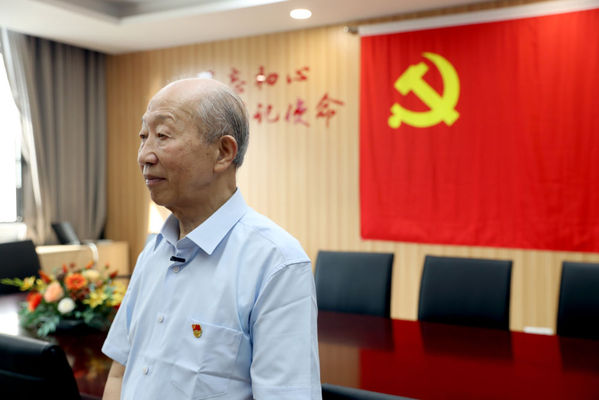 鲜红党旗下,老人的眼眶再一次湿润。他取下眼镜,直起身子,语气坚定:“我会做一名合格的共产党员,继续学习,继续为人民服务。我虽然年纪大,但我将竭尽全力。”