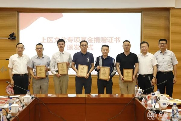 会上,复旦大学党委副书记、上海医学院党委书记袁正宏,上海医学院党委副书记、副院长徐军,复旦大学外联处处长杨增国为上医文化专项基金捐赠者章滨云、唐卉、叶葳涛、张戬、周云颁发捐赠纪念牌。上海医学院党委副书记张艳萍主持会议。相关部门负责同志分别介绍了上医文化工作情况和上医文化中心建设规划。