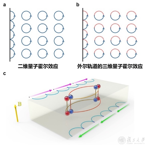图(b)基于外尔轨道的三维量子霍尔效应图示