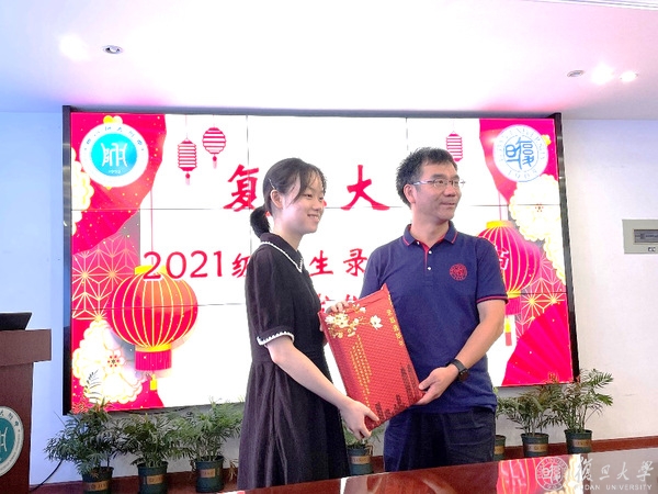 当天,包括罗雅萧在内,来自成都七中、树德中学、四川师范大学附属中学的49名“新复旦人”收到了复旦大学四川招生组老师亲手送上的复旦大学2021级新生录取通知书。