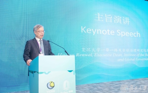 复旦大学一带一路及全球治理研究院常务副院长黄仁伟做主旨演讲