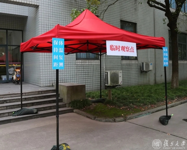 参训过程中,在本部校医院(五号楼)、南区体育场(体教部一楼教室)、邯郸路南侧足球场(操场内临时房)、江湾校区(保障楼一楼医务室)、张江校区(保障楼一楼医务室)、枫林校区门诊部、护理学院校区(护理学院教学楼一楼休息室)共设立7个医疗保障点,每个保障点配备1名专职医生,对发热患者和普通患者施行分开就诊原则。针对发热患者会进行体温复测,并根据《校园发热人员应急处置工作方案》采取信息登记、隔离监测、防疫就诊等处置措施。普通患者则进入正常医疗保障环节。