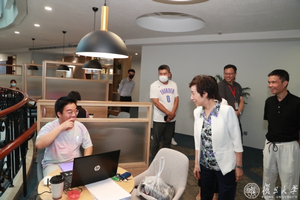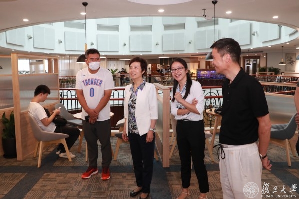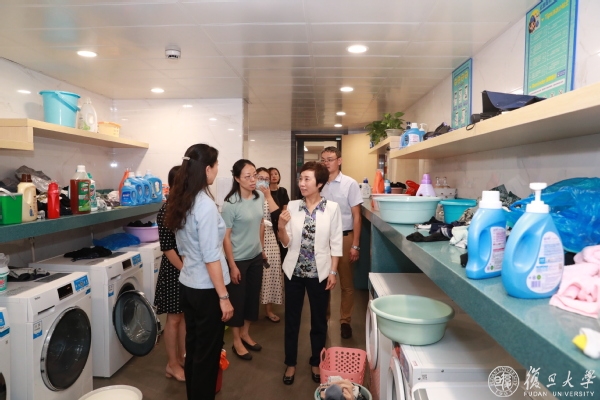 在邯郸校区东区17号楼,焦扬一行一一察看了自习室、健身房、瑜伽舞蹈室、党团活动室、马赛克工作室等学生宿舍生活文化空间,了解学生在书院自我管理、自我服务并积极参与书院建设的情况,还随机走访了寝室、洗漱间、洗衣房以及辅导员房间,检查宿舍楼里各项学习生活设施配备。