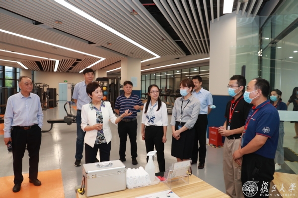 在江湾校区综合体育馆,焦扬一行先后察看了羽毛球馆、网球馆、篮排球馆、健身房和游泳馆的管理情况,仔细询问师生们对各类场地的使用情况。