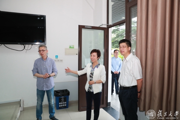 在第三教学楼,焦扬一行察看本科生课程开课情况,并与计算机科学技术学院教授吴杰、数学科学学院教授金路、国际关系与公共事务学院副教授蒋昌建等开课教师进行交流。