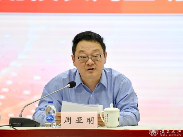 周亚明代表中共复旦大学委员会向大会的胜利召开表示热烈祝贺,向一直以来支持和关心学校各项工作的九三学社上海市委表示感谢。他充分肯定了九三学社复旦大学第七届委员会五年来为学校事业发展作出的贡献,并对新一届委员会提出了四点要求:一是夯实多党合作政治基础,把文化传承好;二是不断推进自身能力建设,把梯队建设好;三是提升参政议政综合能力,把品牌建设好;四是服务学校学科建设发展工作,把任务承担好。