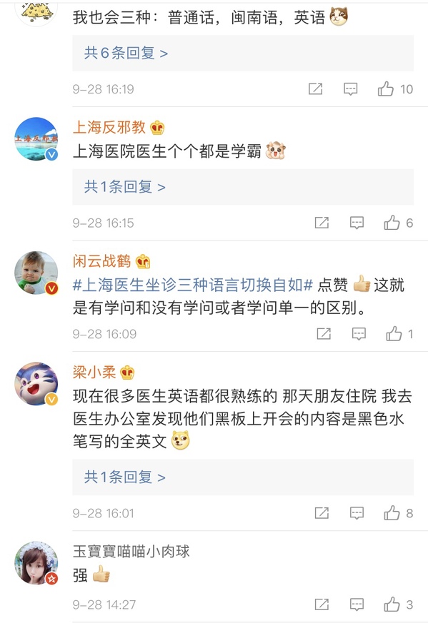 三种语言自如切换的医生在网上走红,网友点赞之余纷纷评论,“这就是上海医护的素质,更是上海城市多元开放包容的体现!”“像董主任这样的医生,在上海不少见!她只是典型代表!”