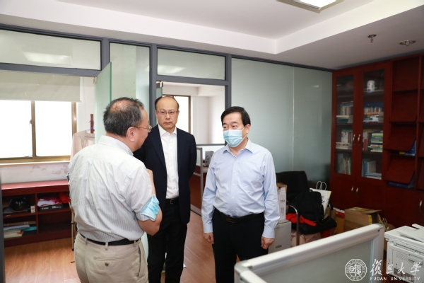 许宁生一行先后走访国际问题研究院、国际关系与公共事务学院、社会发展与公共政策学院,分别察看了教师办公室、资料室、实验室等空间使用情况,一路听取相关负责人介绍,了解师生建议。