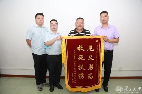 9月28日下午,在复旦大学袁成英楼,党委学生工作部第二党支部姚宏强同志从上海巴士公司代表手中接过锦旗,上面印着“见义勇为,救死扶伤”。姚老师一段专业、果断的急救事迹才被大家知晓。