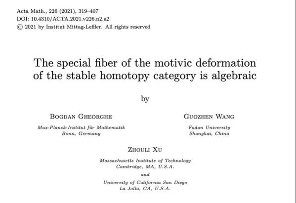 今年7月,复旦大学上海数学中心的王国祯副教授在国际顶尖数学期刊《数学学报》(Acta Mathematica)在线发表了他与合作者B. Gheorghe、徐宙利的论文《稳定同伦范畴的母体形变的特殊纤维是代数的》(暂译名)The special fiber of the motivic deformation of the stable homotopy category is algebraic。这是他五年以来在国际顶尖刊物发表的第五篇研究成果论文,也是复旦大学上海数学中心成立以来第六篇登上数学四大顶尖期刊的文章。在文章中,他自己创造“工具”,探索无穷维的拓扑空间,他在站上“巨人的肩膀”前进的过程中,最终计算出数学界学者们“有生之年”的结果。