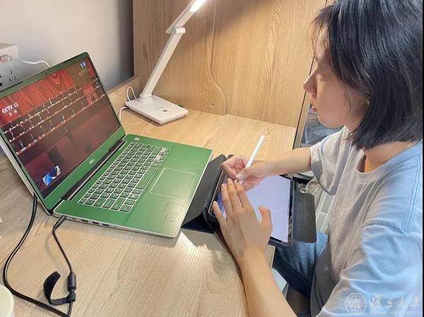 “在假期里,我曾有幸参观了位于上海黄浦区的孙中山故居纪念馆,孙中山先生救国救民的情怀和与时俱进的精神深深感染了我。今天观看纪念大会直播,更让我热泪盈眶和感慨万千——今天的美好生活是一代代先辈为子孙后代,为革命理想拼搏出来的!作为新时代的青年,新闻学院的学子要以笔为戈,发出中国声音,讲好中国故事,传承革命精神,凝聚共同奋斗理想,勇于担当全面建设社会主义现代化国家的使命,为中华民族伟大复兴的历史伟业添一份力!”