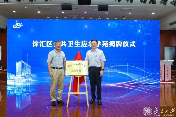 何纳院长与徐汇区卫健委任雪雷主任共同为应急学苑揭牌