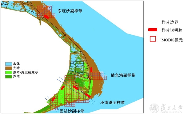 崇明东滩主观测场的长期观测样带