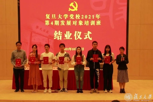 10月12日下午,复旦大学党校2021年第4期发展对象培训班结业仪式在邯郸校区逸夫科技楼举行,来自各院系的181位学员结束了为期半个多月的党校培训顺利结业。在培训期间,学员们通过理论与实践相结合的方式,深入学习总书记“七一”重要讲话精神,持续加强党的基本理论学习,在学思践悟中坚定理想信念,在奋发有为中践行初心使命。
