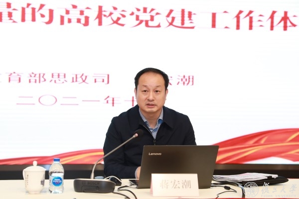 10月19日上午,复旦大学党委举办学校党委理论学习中心组(扩大)学习会暨学习贯彻《中国共产党普通高等学校基层组织工作条例》专题培训首场报告会。教育部思想政治工作司党建统战处处长蒋宏潮应邀作专题辅导报告,复旦大学党委书记焦扬主持会议。