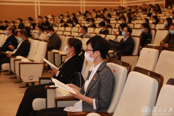 校党委理论学习中心组成员、各二级单位党政主要负责同志、各二级党组织副书记、全体教职工党支部书记和组织员共300余人在邯郸校区主会场和枫林、张江校区视频分会场参加了学习。