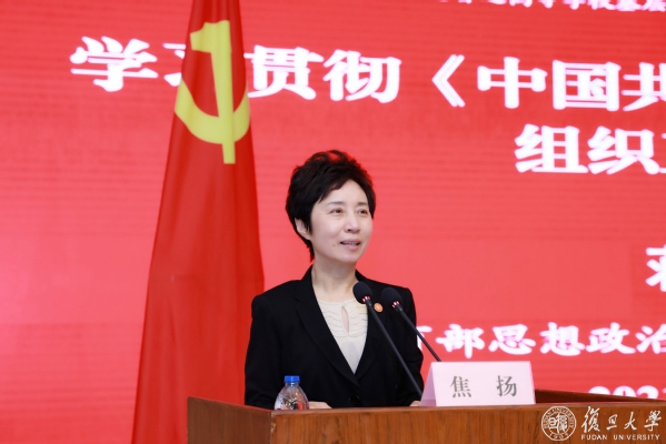焦扬对蒋宏潮同志的精彩报告表示感谢。她指出,在建党百年的重大时刻修订并颁布《高校基层组织工作条例》这一重要党内法规,对于坚持和加强党对高校的全面领导、贯彻党的教育方针、落实立德树人根本任务、建设高质量教育体系,意义重大、影响深远。全校要以学习贯彻《条例》为重大契机,努力开创学校党建工作新局面,为建设“第一个复旦”提供更坚强有力的政治保证、思想保证和组织保证。