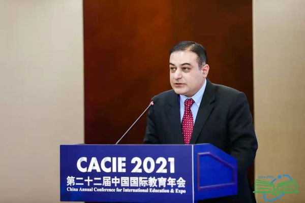 巴基斯坦驻华大使馆教育专员穆哈穆德·苏莱曼·马苏德介绍了中巴推进共建“一带一路”教育的行动重点与合作方向,并回顾了过去五年间中国和巴基斯坦在教育领域合作所取得的成就,总结了在“一带一路”倡议之下,中国和巴基斯坦双边高等教育领域的进展。