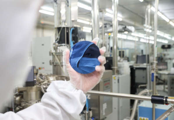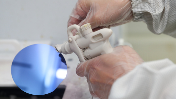 复旦大学教授张卫、周鹏团队成员在观察硅片表面。新华社发