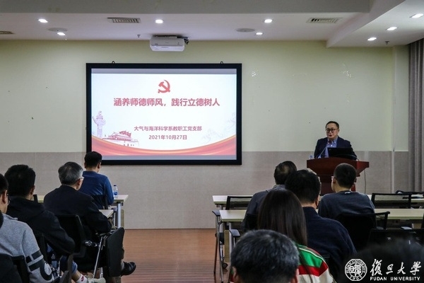 10月27日下午,应大气与海洋科学系教职工党支部邀请,我校“钟扬式好老师”代表、微电子学院教授周鹏为全系教师做题为“我与研究生共成长”的专题讲座。