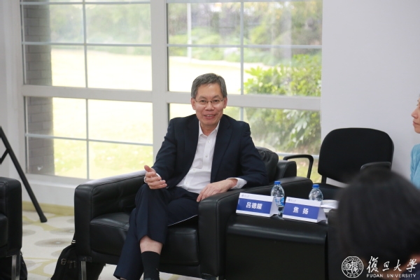 新加坡驻沪总领事蔡簦合、复旦大学副校长陈志敏出席会见。会见结束后,新加坡大使一行与复旦学者进行了座谈交流。
