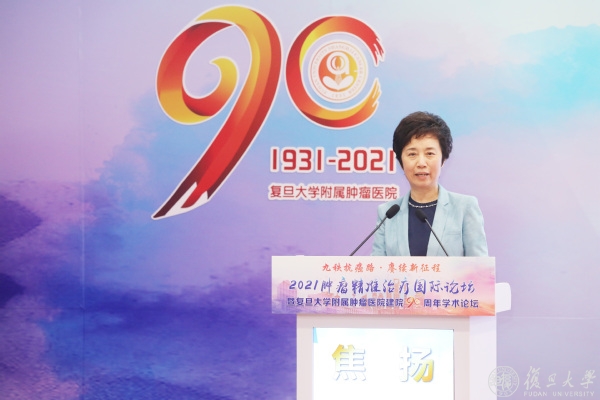 焦扬指出,经过90年不懈奋斗,肿瘤医院已经发展成为一所集医疗、教学、科研、预防为一体、全国顶尖的肿瘤专科三甲医院,为健康中国、健康上海作出了重要贡献。肿瘤医院走过的90年,是初心不改、勇担使命的90年,是大医精诚、为民服务的90年,是追求卓越、勇攀高峰的90年。经过90年的接续攀登,“复旦肿瘤”已经成为中国肿瘤医学的一面旗帜。