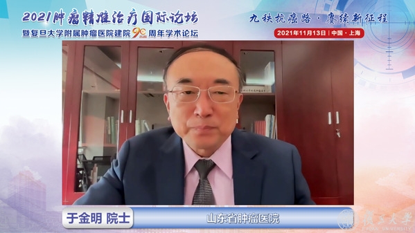 于金明通过远程连线的方式为肿瘤医院建院90周年致贺词,对医院在科研创新实力、人才团队建设、医疗服务能力等方面取得的瞩目成绩表示祝贺,对医院始终牢牢占据我国肿瘤防治队伍前列,在国内、国际肿瘤领域树立旗帜,保障人民群众健康等方面作出的突出贡献表示感谢。他希望肿瘤医院未来抓住战略机遇,坚持创新驱动,在医教研防等方面取得更大突破,更好地树立榜样和标杆,为推进健康中国建设作出更大贡献。
